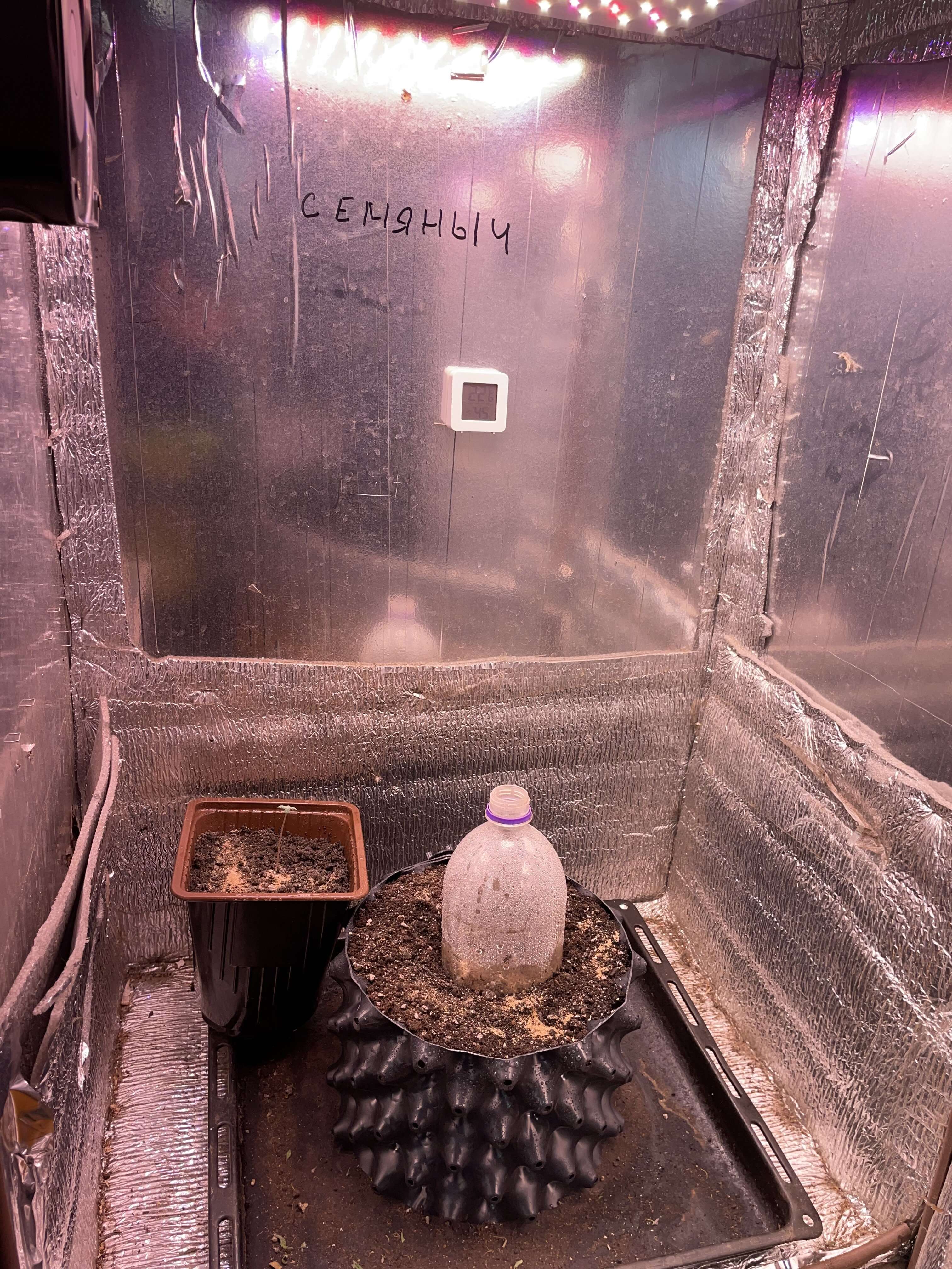 4 день проращивание наконец то вылез пока в каске, но она с боку так что думаю завтра уже скинет и перейдем на вегетацию…